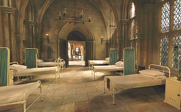 Ošetrovňa na hrade je prevádzkovaná Madam Pomfreyovou, prezývanou taktiež Poppy, je vrchná sestra. Študenti a zamestnanci, ktorí utrpia nehodu a zranenie v priebehu školského roka sú poslaný rovno na ošetrovňu pre liečbu. Iba šiesti návštevníci sú vpustení naraz pre jednu osobu. Nemocničné krídlo je dobre vybavené pre boj so všetkými druhmi magického zranenia, od zlomených končatín po rast nových kostí. Iba v najvážnejších prípadoch sú pacienti poslaný do nemocnice svätého Munga pre čarovné choroby a úrazy.